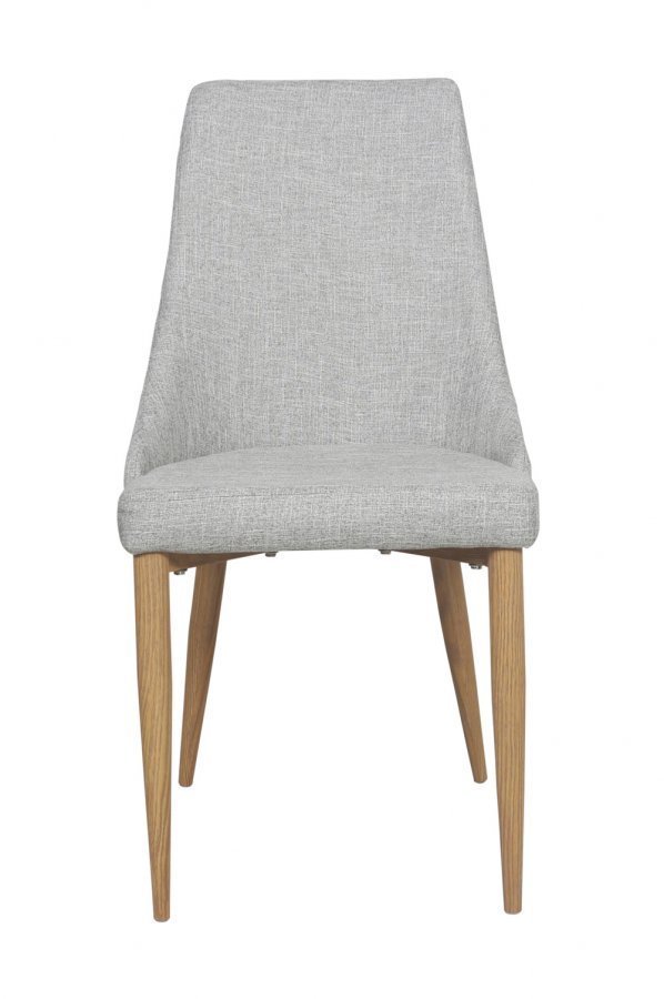 Moderni ja miellyttävä ruokapöydän tuoli. Vakaa tuoli, jossa tammea muistuttavat metallijalat. Korkeus: 91 cm, syvyys: 59 cm, istuinkorkeus: 48 cm, istuinsyvyys: 44 cm, leveys: 45