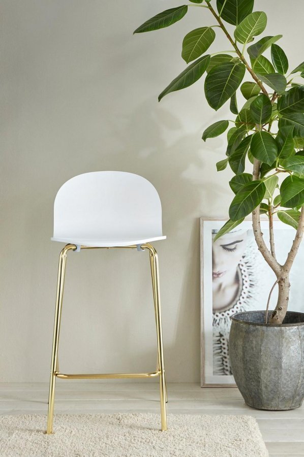 Baarituoli taivutettua puuta ja metallia. Korkeus 98 cm, leveys 50 cm, syvyys 51 cm. Istuinkorkeus 68 cm, istuinsyvyys 39 cm. Toimitetaan osina.