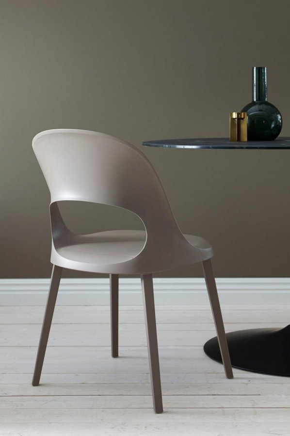Muovituoli sisä- ja ulkokäyttöön. Korkeus 80 cm, leveys 45 cm, syvyys 53 cm. Istuinkorkeus 46 cm, istuinsyvyys 44 cm. Toimitetaan jalat irrallaan.