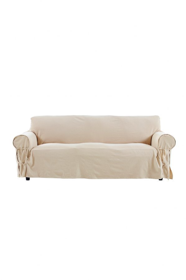 Napakkaa, pehmeäksi pestyä materiaalia. Istuvuutta säädetään käsinojien solmimisnauhoilla. Istuinleveys enintään 120 cm. Tummia irtopäällisiä ei suositella vaaleille huonekaluille.