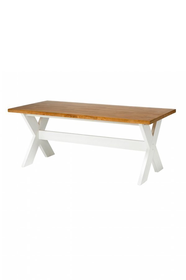 Ruokapöytä kumipuuta. Tammenväriseksi petsattu/valkolakattu. Pöytälevyssä urat. Korkeus 75 cm. Pöytälevyn paksuus 4 cm. Toimitetaan osina. Rahtipaino 69 kg. Tarkista rahtimaksu Toimitus-välilehdeltä.