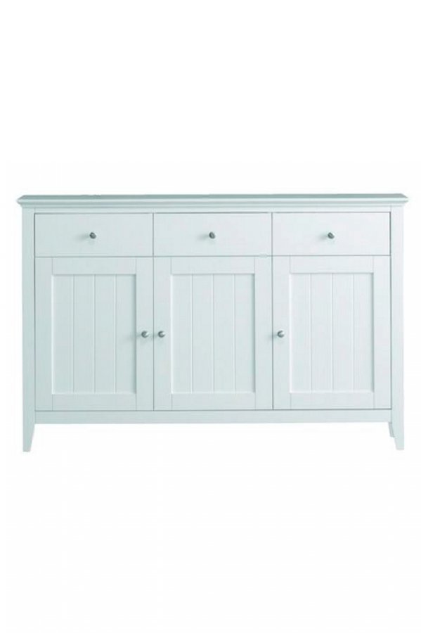 Valkomaalattu kumipuuta/mdf-levyä. 3 ovea, 3 laatikkoa. 1 kiinteä hylly. Leveys 140 cm, syvyys 45 cm, korkeus 90 cm. Toimitetaan osina. Rahtipaino 60 kg. Tarkista rahtimaksu Toimitus-välilehdeltä.