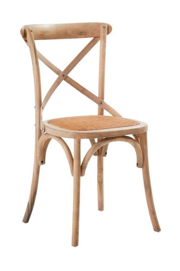 Jalavainen tuoli, jonka selkänojassa ristikko. Istuin rottinkia. Korkeus 88 cm Leveys 50 cm Syvyys 52 cm