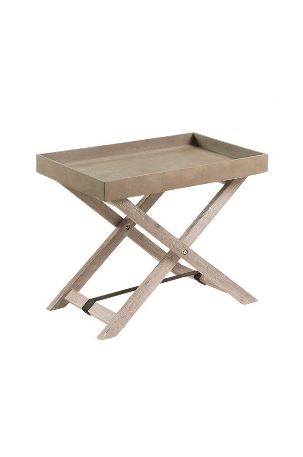 Tarjotinpöytä akasiaa ja irrotettava tarjotin sementtiä. 55×35, korkeus 45 cm.