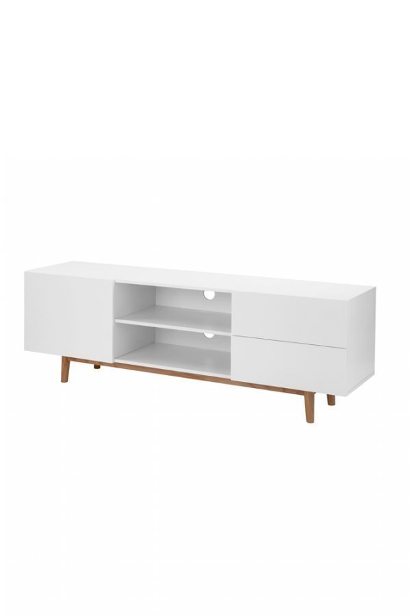 Yläosa valkoiseksi maalattua MDF-levyä, valkoöljytyt tammijalat. Toimitetaan osina. Mitat: leveys 160 cm, syvyys 40 cm, korkeus 55 cm. Rahtipaino 47 kg. Tarkista rahtimaksu netin Osto-oppaasta.