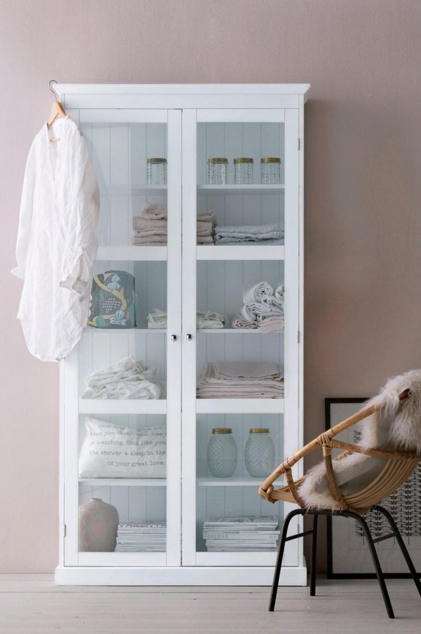 Lakattua MDF-levyä ja kirkasta lasia. Mitat: 195x35x100 cm. Toimitetaan osina. Paino 68 kg. Tarkista rahtimaksu Toimitus-välilehdeltä.