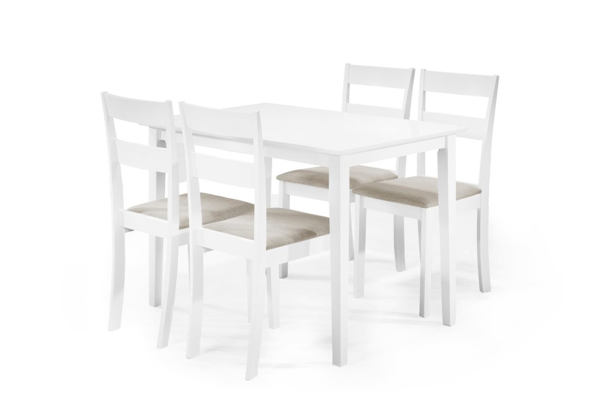 Edullinen Emma-ruokailuryhmä neljälle. Tuoleissa on mukavuutta lisäävät pehmustetut istuimet. Ostoksille!