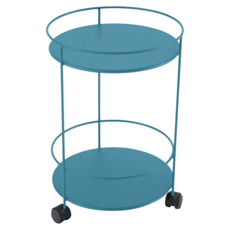 Käytännöllinen pyörillä liikuteltava pöytä tarjoiluun ja säilytykseen. Kaksikerroksinen pöytä sopii hyvin esimerkiksi parvekkeelle tai pieniin tiloihin.