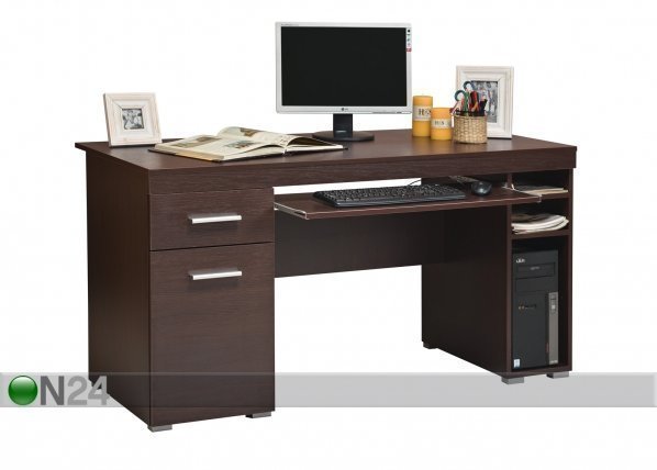 Tietokonepöytä on valmistettu laadukkaasta kalustelevystä – viimeistely: wenge – yksi laatikko liukuu metallikiskoilla… Lue lisää »