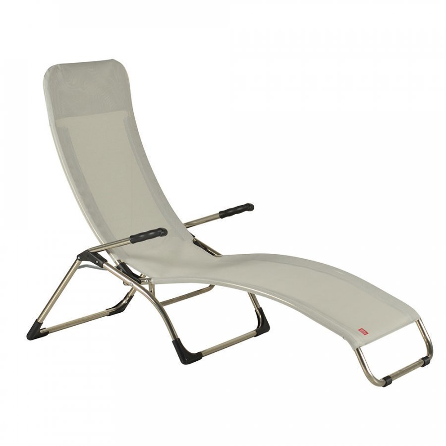 Tyylikäs ja mukava aurinkotuoli. Taitettavan tuolin voi säätää kahteen eri asentoon. Aurinkotuoli on valmistettu alumiinista ja säänkestävästä Textilene-polyesteristä. Niskatyyny ei sisälly.