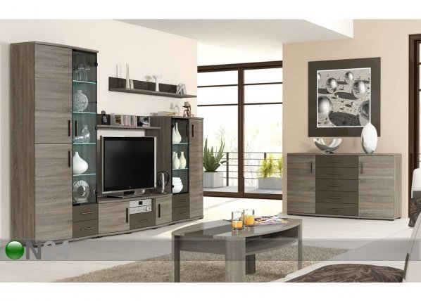 Ryhmään sisältyy tv-taso, korkea ja matala vitriinikaappi, kaksi seinähyllyä ja lipasto – valmistettu… Lue lisää »