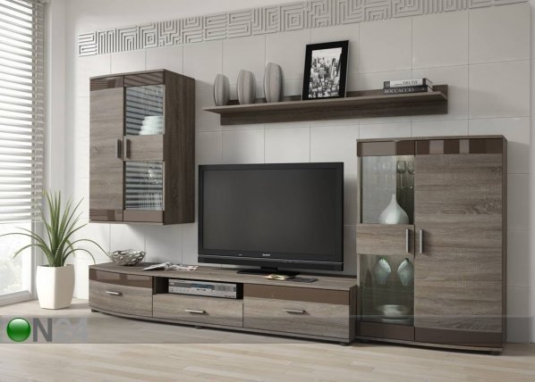 Hyllystöön sisältyy tv-taso, lattia vitriinikaappi, seinävitriini ja seinähylly – valmistettu MDF-levystä – viimeistely:… Lue lisää »