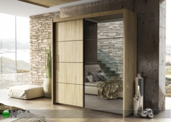 Liukuovinen vaatekaappi on valmistettu kalustelevystä – viimeistely: sonoma tammi – yhdessä liukuovessa on… Lue lisää »