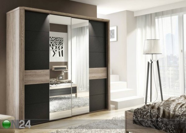 Liukuovinen vaatekaappi on valmistettu kalustelevystä – viimeistely: runko sonoma tammi/ovet matta tummanharmaa+peili -… Lue lisää »