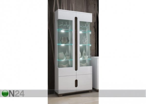 Vitriinikaappi on valmistettu valkoisesta kalustelevystä, etupaneelit valkoista kiiltäväpintaista MDF levyä – lasiovien takana… Lue lisää »