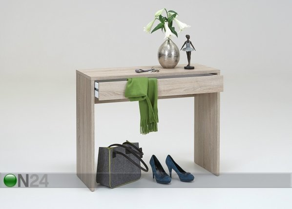 Kirjoituspöytä on valmistettu melamiinipintaisesta kalustelevystä – pöydässä on leveä metallikiskoilla liukuva laatikko -… Lue lisää »