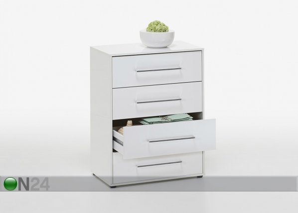 Korkeakiiltoisesta kalustelevystä valmistetussa lipastossa on neljä laatikkoa – laatikot liukuvat metallikiskoilla – vetimet… Lue lisää »
