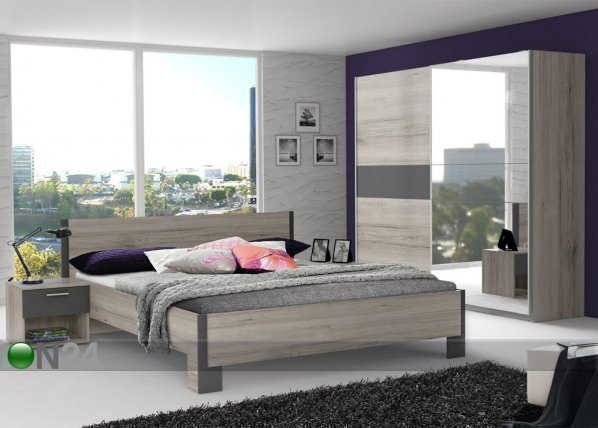 Makuuhuoneryhmään sisältyy sänky, sängynpohja, vaatekaappi ja kaksi yöpöytää – valmistettu laminoidusta kalustelevystä… Lue lisää »
