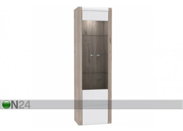Vitriinikaappi on valmistettu laminoidusta kalustelevystä – oven takana on kolme lasihyllyä ja kaksi… Lue lisää »