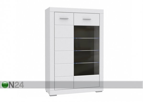 Kaappi on valmistettu laminoidusta kalustelevystä – lasioven takana on kolme lasihyllyä – vasemmanpuoleisen… Lue lisää »