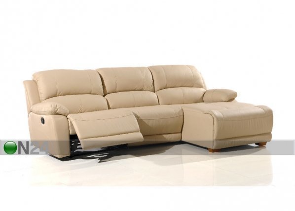 Mukava kulmasohva säädettävällä jalkatuella – istuin, selkänoja, käsinojat ja jalkatuet on verhoiltu beigellä… Lue lisää »