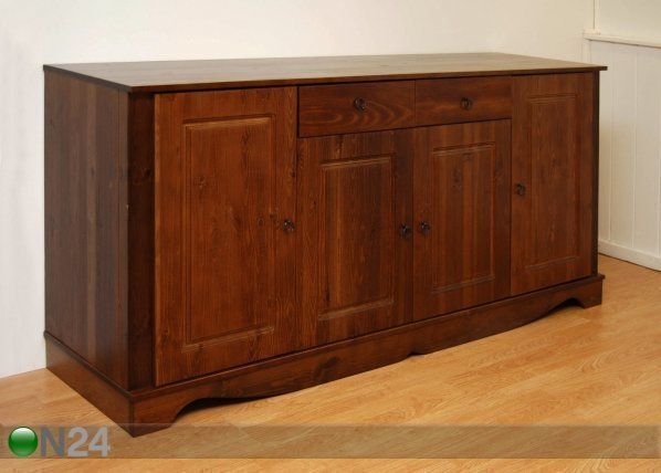 Tyylikäs männystä valmistettu lipasto – viimeistelty tummanruskealla petsillä ja lakalla – laatikot liukuvat… Lue lisää »
