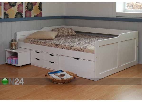 Männystä valmistetussa sängyssä on paljon säilytystilaa ja erilaisia laatikoita – sänkyyn sisältyy: yksi… Lue lisää »