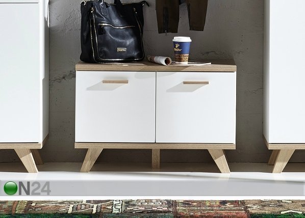 Eteiskaappi on valmistettu kalustelevystä, etupaneelit matta MDF-levyä – jalat ja vetimet ovat massiivipuuta… Lue lisää »