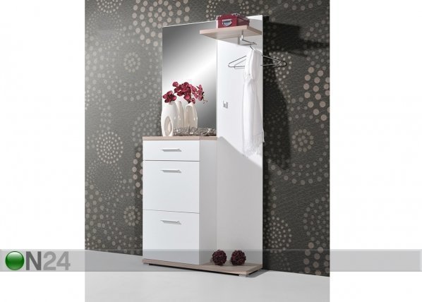 Eteisryhmä on valmistettu kalustelevystä – ryhmä koostuu peilistä, lipastosta ja vaatenaulakosta – lipastossa… Lue lisää »