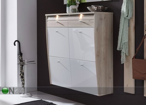 Jalkinekaappi on valmistettu melamiinipinnoitetusta kalustelevystä – valkoiset etupaneelit ovat korkeakiiltoista MDF -levyä -… Lue lisää »