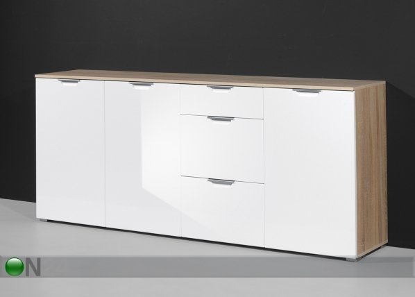 Sturktuuripintaisesta kalustelevystä valmistetussa lipastossa on kolme ovea ja kolme laatikko, etupaneelit korkeakiiltoista MDF… Lue lisää »