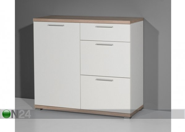 Melamiinipinnoitetusta kalustelevystä valmistetussa lipastossa on yksi ovi ja kolme laatikkoa – oven takana… Lue lisää »