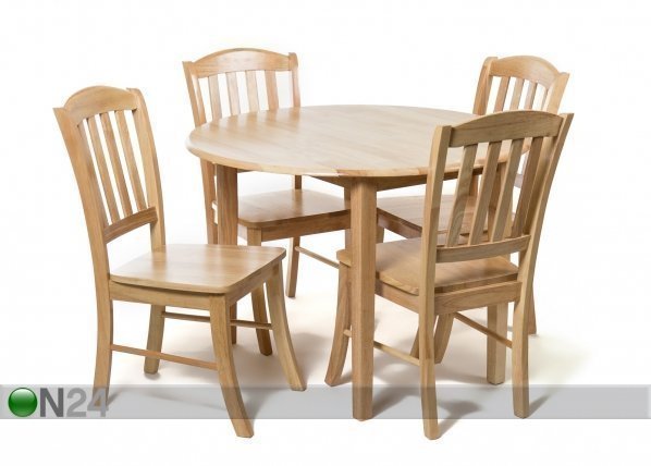 Ryhmään sisältyy klaffipöytä ja neljä tuolia – ruokapöytä on valmistettu kumipuusta, lakkaviimeistely -… Lue lisää »