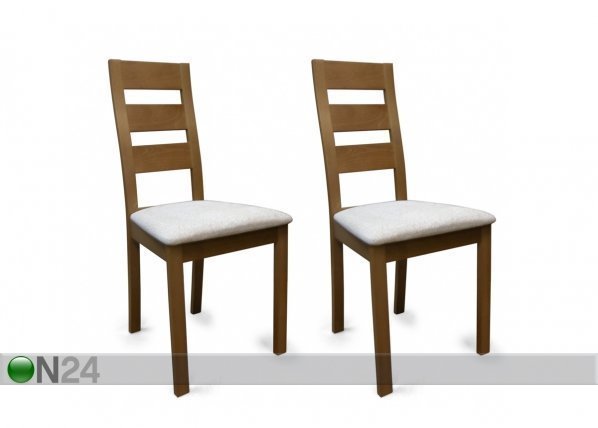 Toimitus sisältää kaksi tuolia – runko massiivipuuta, petsattu pähkinän sävyiseksi – istuimen pehmusteena… Lue lisää »