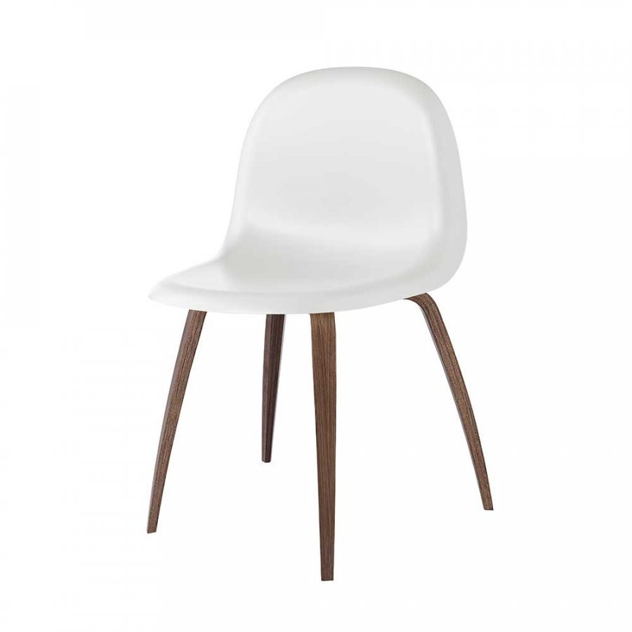 Gubi 3D on tuoli, jossa on pähkinäpuiset jalat ja värillinen istuin. Istuin on valmistettu HiRek-muovimateriaalista ja sen istuinkorkeus on 45cm.