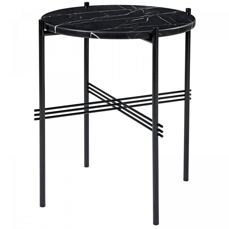 ”TS pöytä Gubi, muotoilu GamFratesi. Kukaan ei ole voinut jättää huomaamatta marmorin luonnollista kauneutta. Tyylipuhtaalla pulveroidusta teräksestä valmistetulla rungolla lepäävä sivupöytä josta useimmat vain uneksivat! Sekä uniikki että eksklusiivinen sellainen! Sisustuslehti Plaza Interiör valitsi TS pöydän 2004 ””Vuoden paras suunnittelu””-kilpailun voittajaksi, ja me ymmärrämme täysin miksi! ”
