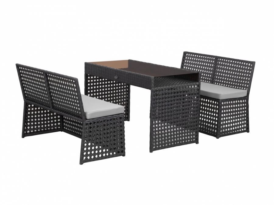 HAITI on edullinen ulkokalusteryhmä, johon kuuluu harmaa keinorottinkinen pöytä ja kaksi sohvaa harmailla tyynyillä. Keinorottinki… Lue lisää »