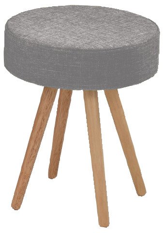 Pyöreä Hamburg-rahi on verhoiltu tyylikkäällä pellavakankaalla. Jalat ovat massiivipuuta. Täyte vaaihtomuovia. Halkaisija 37 cm.