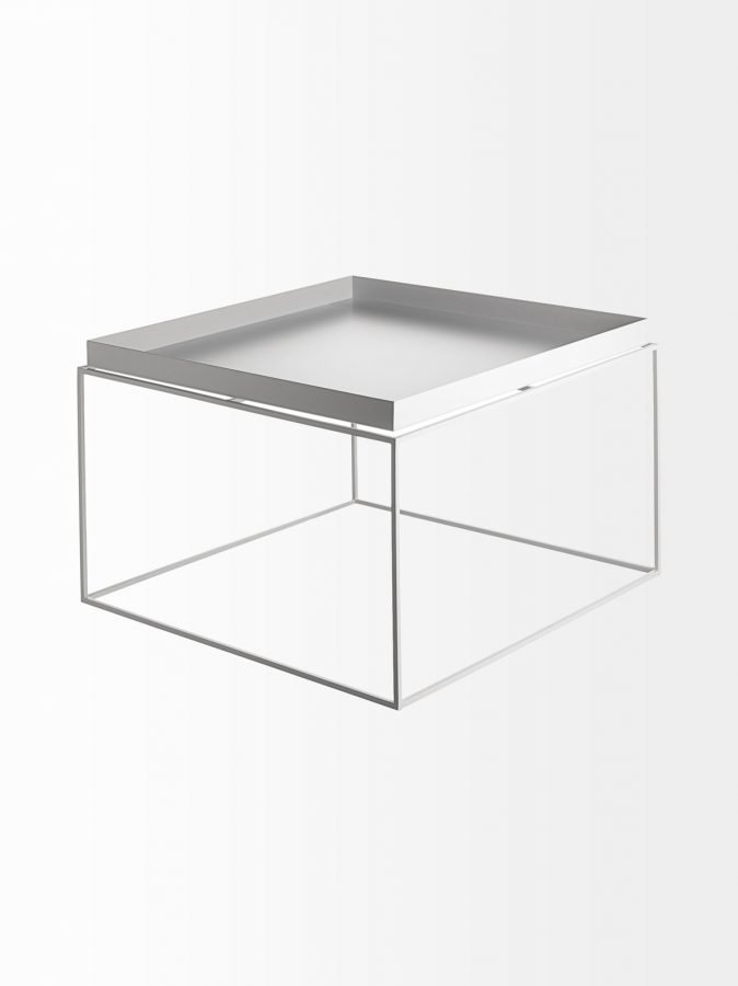 Monikäyttöinen pöytä soveltuu erilaisiin tiloihin ja käyttötarkoituksiin. Tyylikkäässä teräksisessä pöydässä on irrotettava tarjotinosa. Pöydän mitat ovat 60 x 60 x 35 cm.