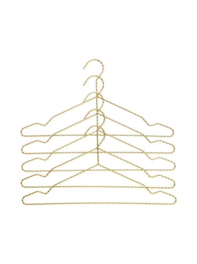 Metallisessa henkarissa on yksinkertaisen tyylikäs muotoilu. Pakkauksessa on viisi vaateripustinta. Ripustimien leveys on 42 cm ja korkeus 20 cm. 503573