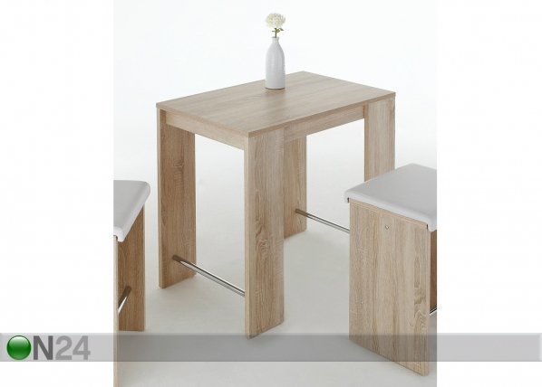 Korkea ruokapöytä on valmistettu kalustelevystä, viimeistelynä struktuuritammi – penkit eivät sisälly toimitukseen -… Lue lisää »