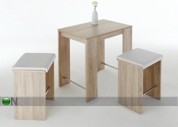 Ryhmään sisältyy korkea pöytä, kaksi penkkiä ja kaksi istuintyynyä – pöytä ja penkit… Lue lisää »