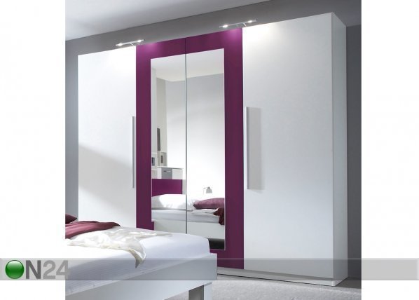 Neljäovinen vaatekaappi on valmistettu laminoidista kalustelevystä – viimeistely: valkoinen/violetti – kaksi peiliovea -… Lue lisää »