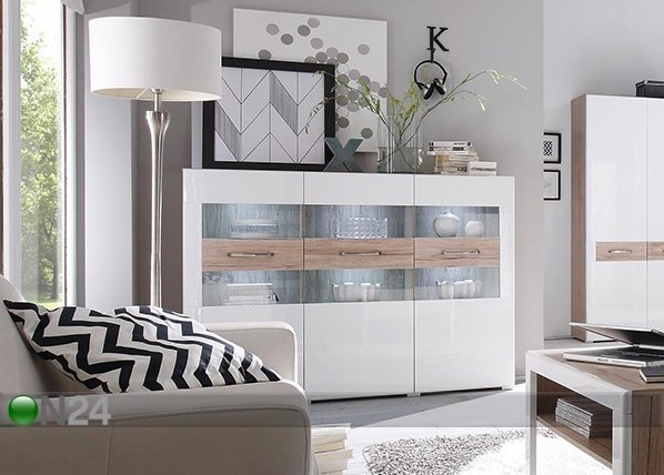 Vitriinikaappi on valmistettu laadukaasta laminoidusta kalutelevystä ja MDF -levystä – kaapissa on kolme… Lue lisää »