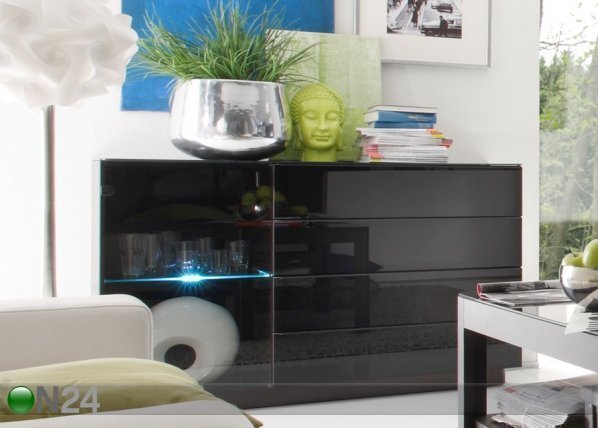 Vitriinikaappi/lipastossa on neljä laatikkoa ja yksi lasiovi – runko on valmistettu laadukkaasta kalustelevystä… Lue lisää »