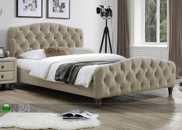 Sängyn runko on valmistettu MDF -levystä – verhoiltu vaaleanruskealla polyesteri kankaasta – sälepohjat… Lue lisää »