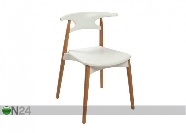 Tuolin istuin ja selkänoja on valmistettu valkoisesta muovista – jalat ja runko puuta,… Lue lisää »