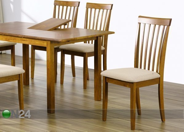 Toimitus sisältää neljä tuolia – valmistettu kumipuusta, lakkaviimeistely – istuin verhoiltu beigen sävyisellä… Lue lisää »