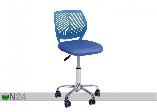 Työtuolin istuin on verhoiltu sinisellä polyesteri verkkokankaalla – selkänoja on valmistettu muovista, väri:… Lue lisää »