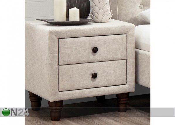 Yöpöydän runko on valmistettu MDF -levystä – verhoiltu vaaleanbeigellä polyesterikankaalla – laatikot liukuvat… Lue lisää »